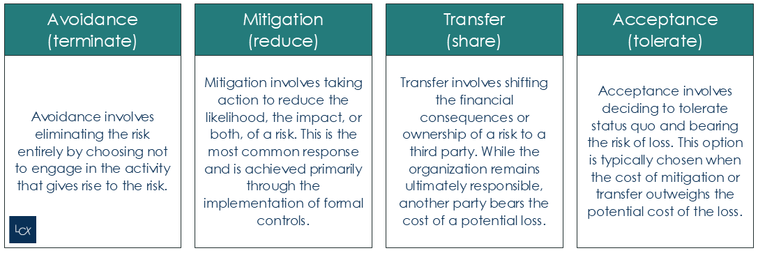 Risk response typically has four fundamental responses - see figure 2:
